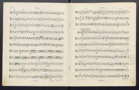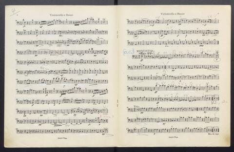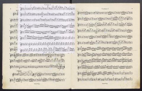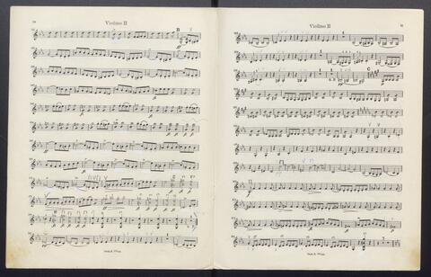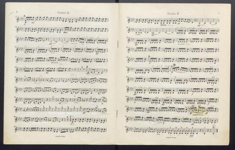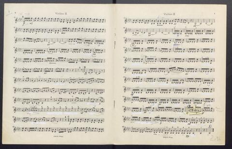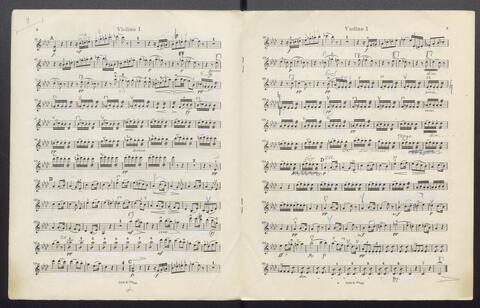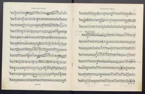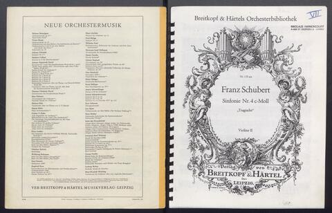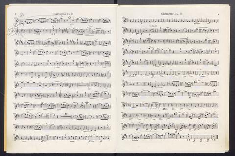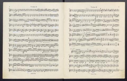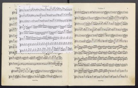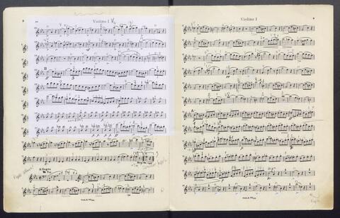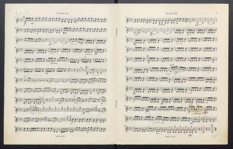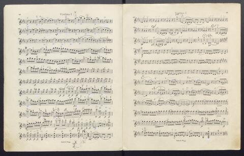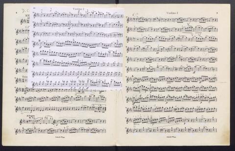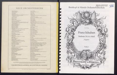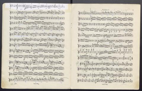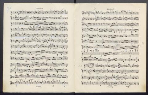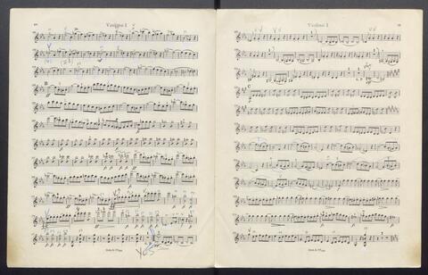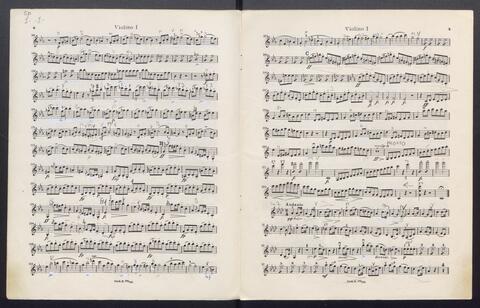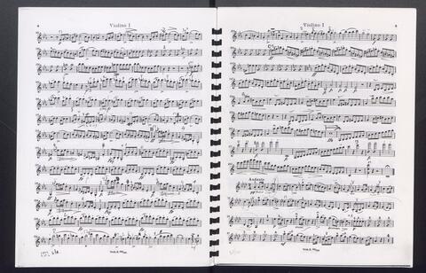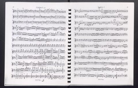 Orchesterstimmen (Fl. I, Fl. II, Ob. I, Ob II, Kl. I B, Kl II B, Fg. I, Fg. II, Hn. I, Hn II, Hn III Es, Hn III Es, Hn. IV Es, Tr. I, Tr, II, Pk., 8 Vl. I, 6 Vl. II., 6 Va., 4 Vc., 5 Kb.)