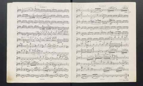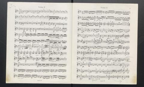 Violine 1 / V: erste Seite Karikatur: "Der Mann mit dem Adlerohr"