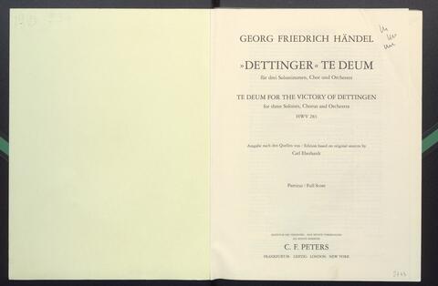 Dettinger Te Deum [HWV 283] / Georg Friedrich Händel. Neue Ausg. nach d. Quellen hrsg. v. c. Eberhardt. Mit Vorw. v. P. Lüttig