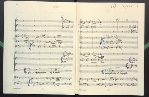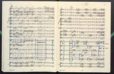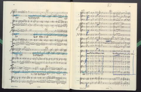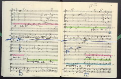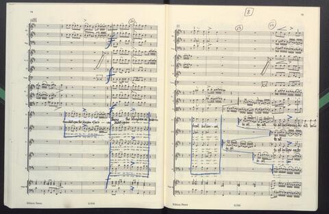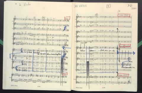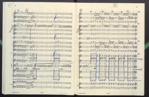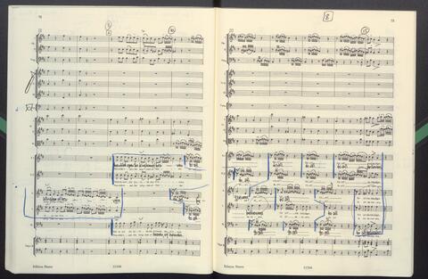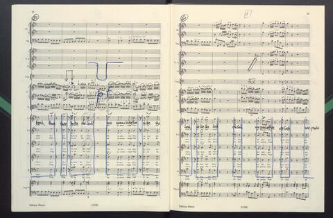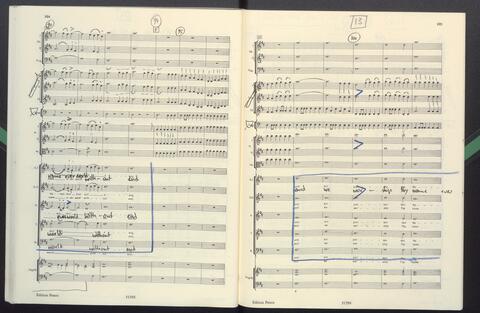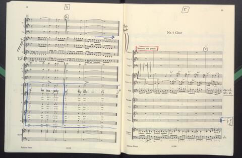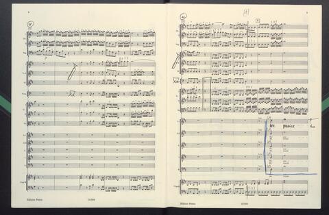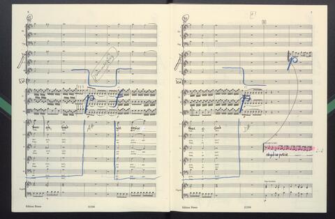 Dirigierpartitur NH. NH:"Blöde Partiturordnung (Trp unter Ob). Trp in Klangnotation (teppert)