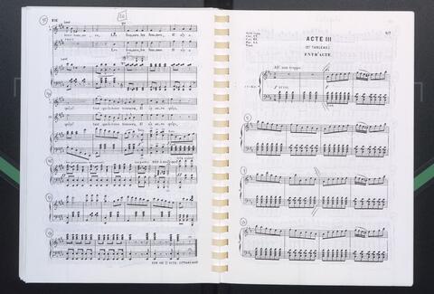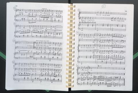 Fotokopie, selbstgebastelter Klavierauszug kammgebunden